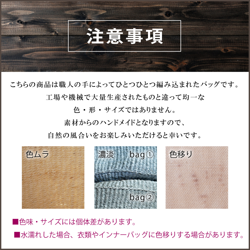 こちらの商品は職人の手によってひとつひとつ編み込まれたバッグです。