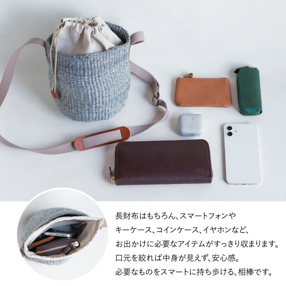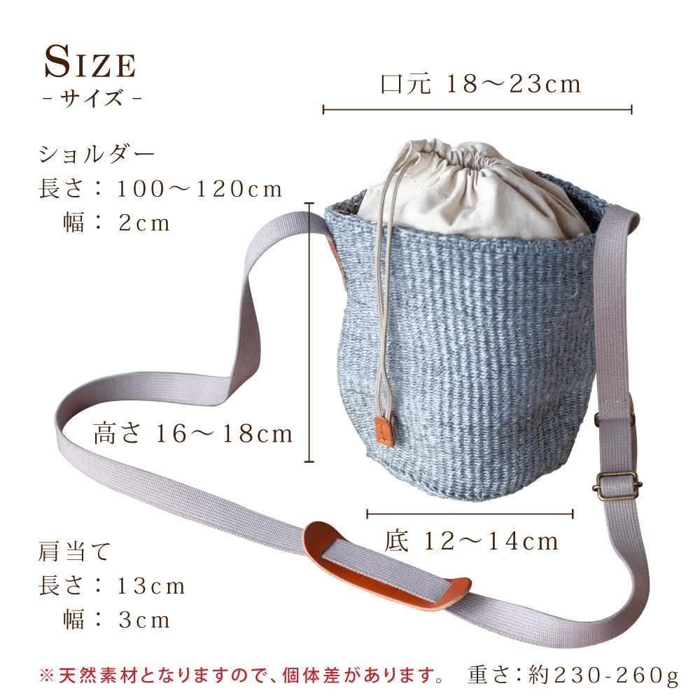 天然素材ならではのナチュラルな風合いに、ふんわりと丸みを帯びた“巾着シルエット”が印象的なかごバッグです。