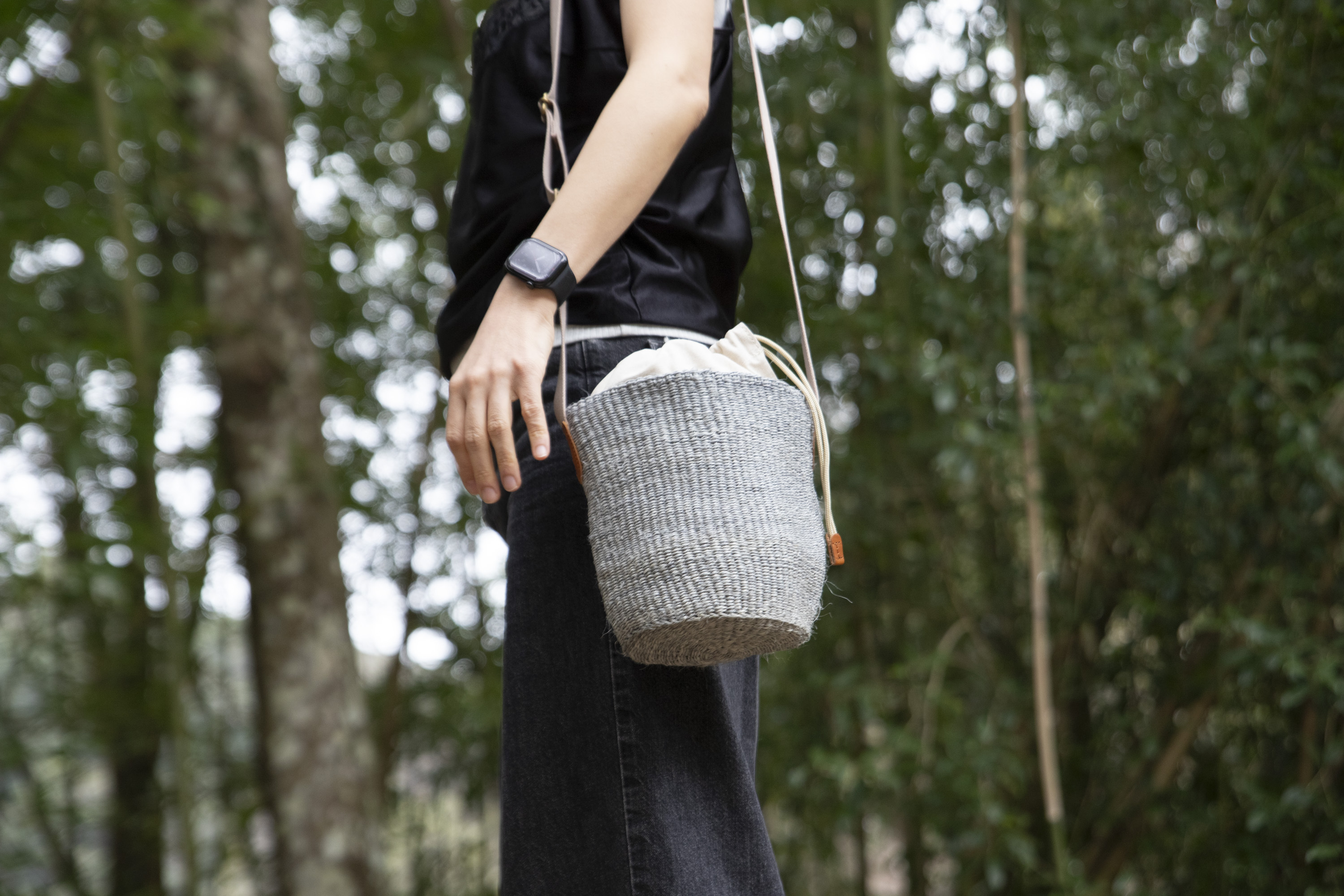 ケニアの職人がひとつひとつ手作りで編み込んだ、通気性に優れたかごバッグ。
