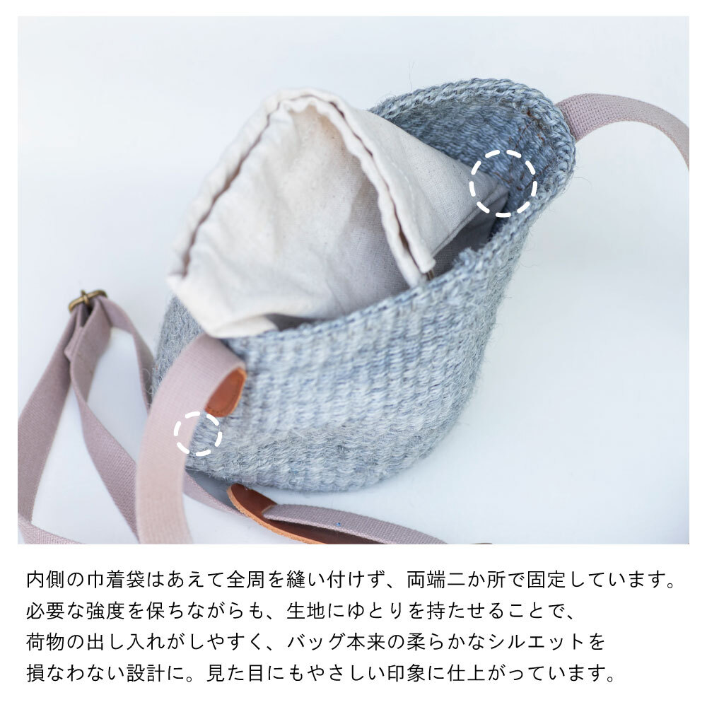 中身が見えにくく、荷物の飛び出しも防げることと、出し入れの際にチクチクしないので快適なかごバッグとしてお使いいただけます。