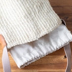 内側の巾着袋はあえて全周を縫い付けず、両端二か所で固定しています。