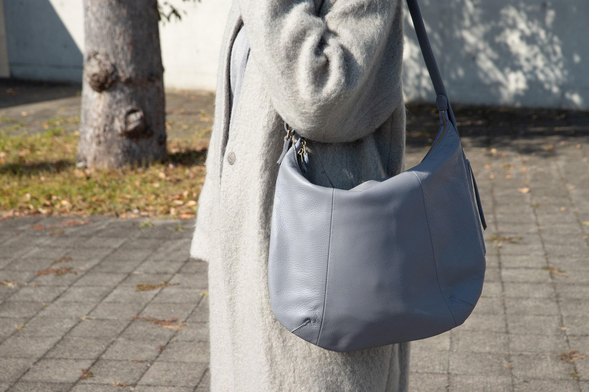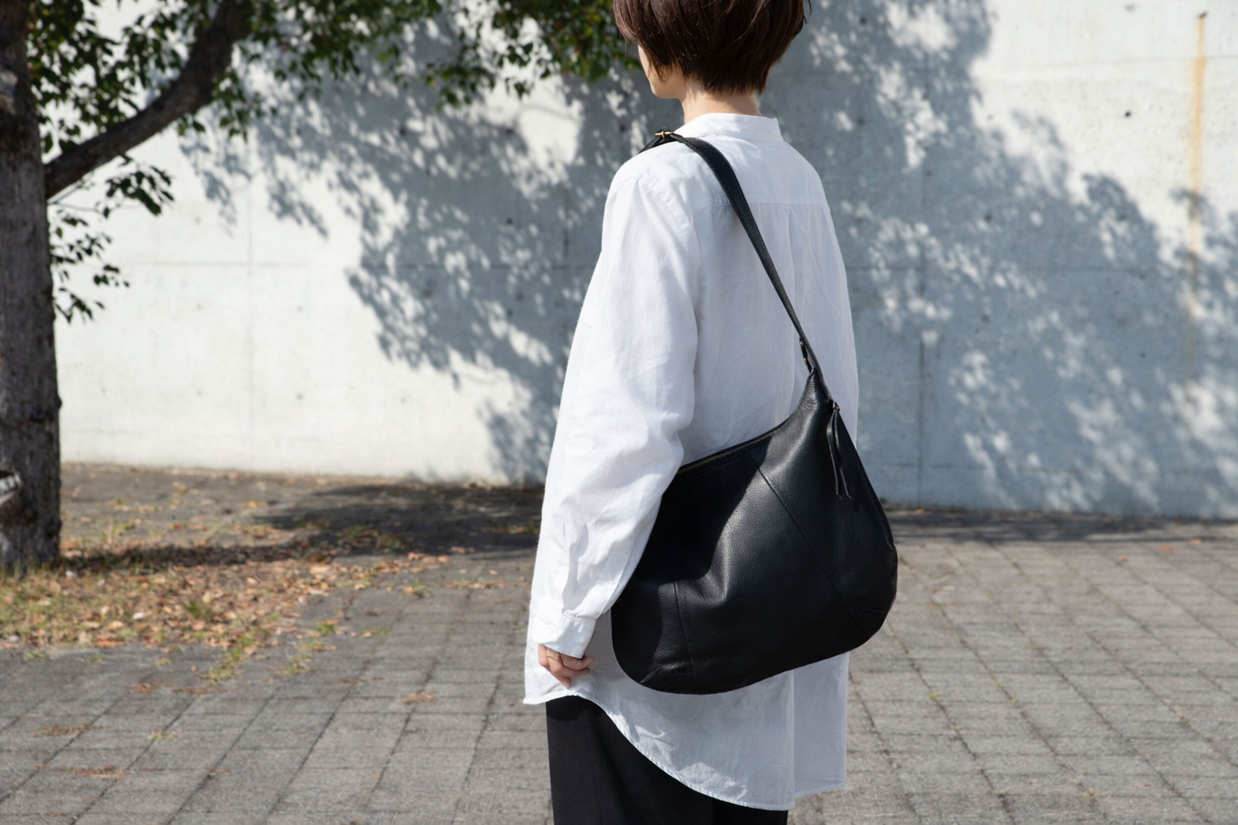 ソフトシュリンクレザーのやわらかな手触りと、体に沿うような持ち心地は、一度使うと手放せなくなるほど。