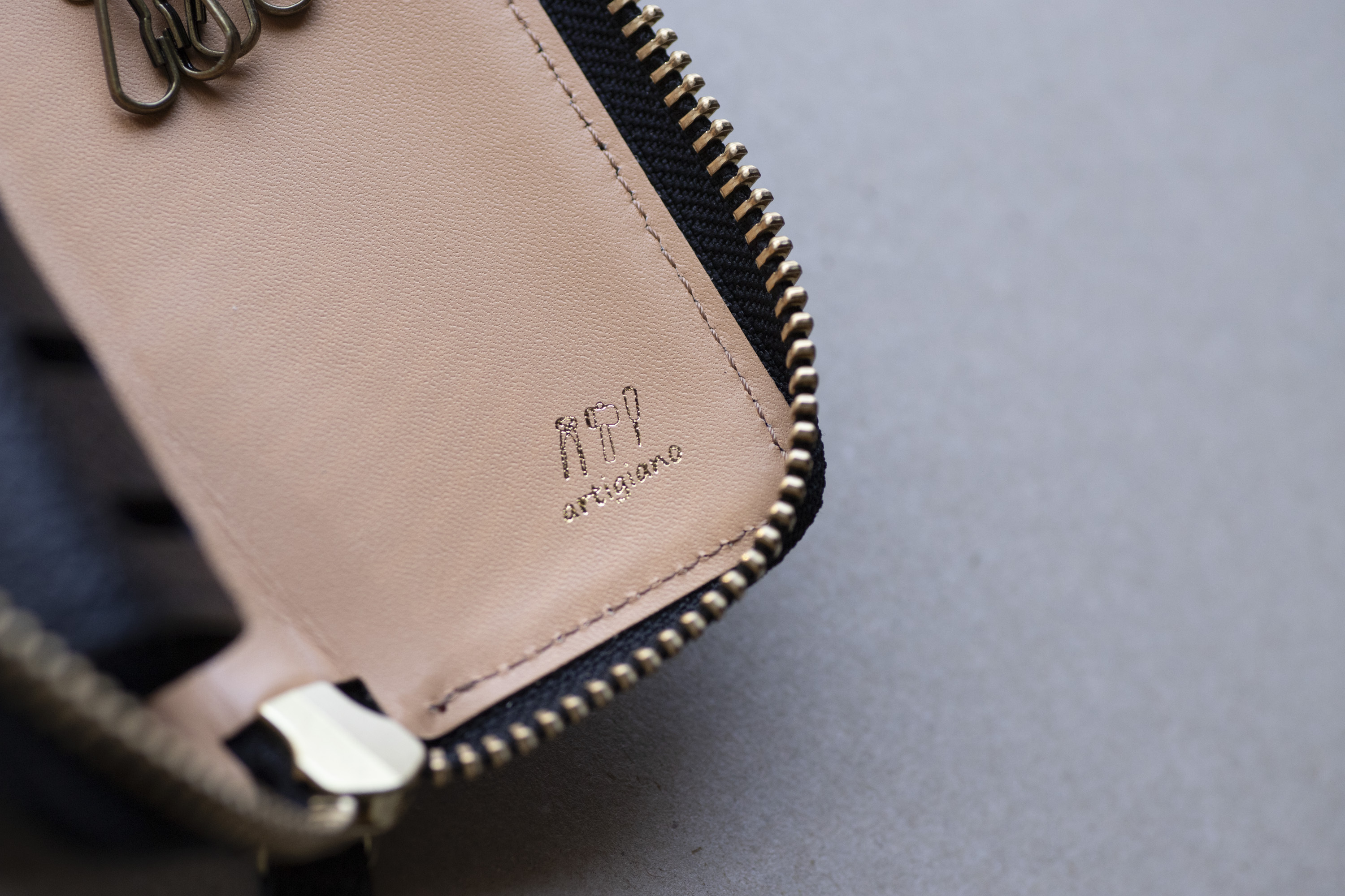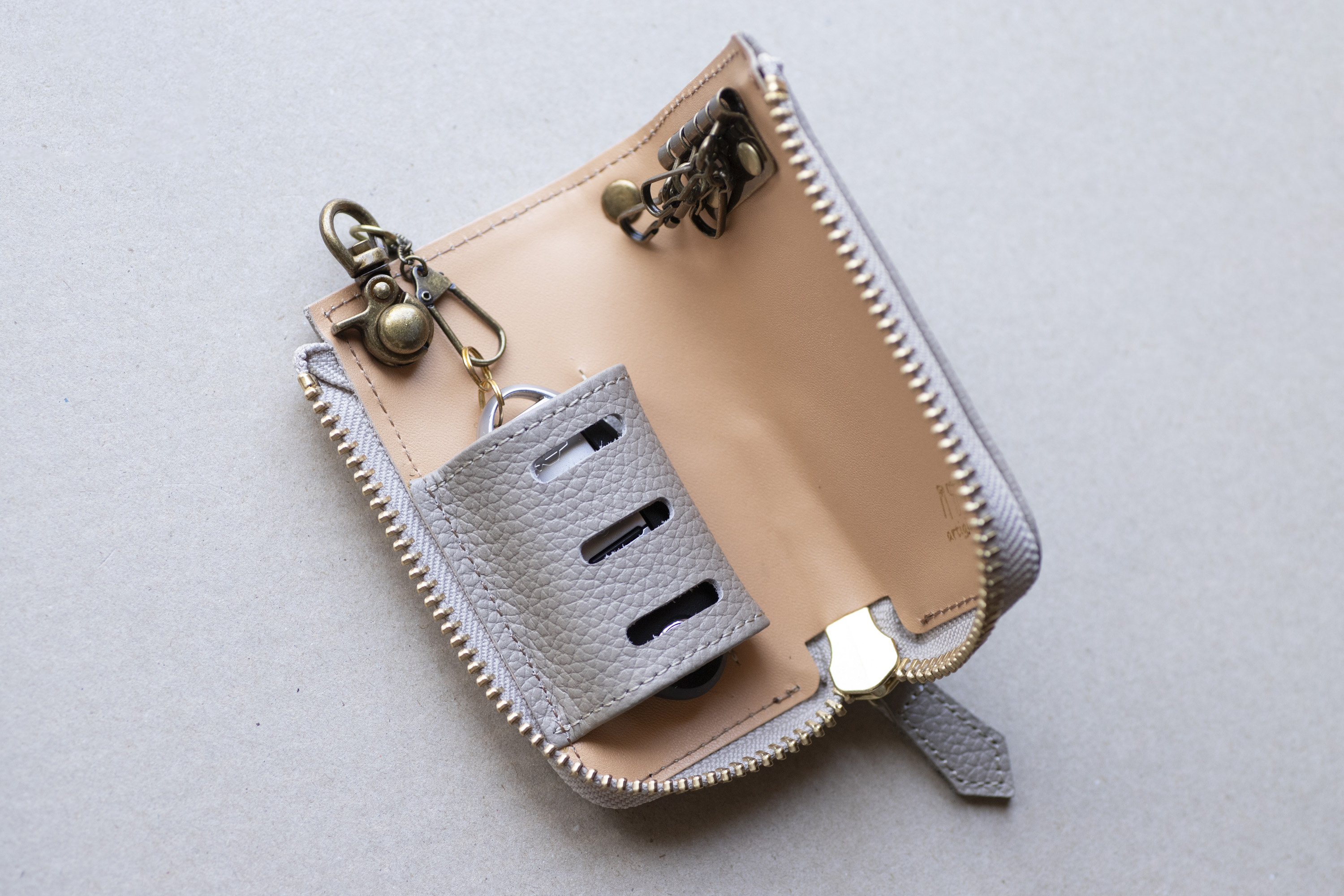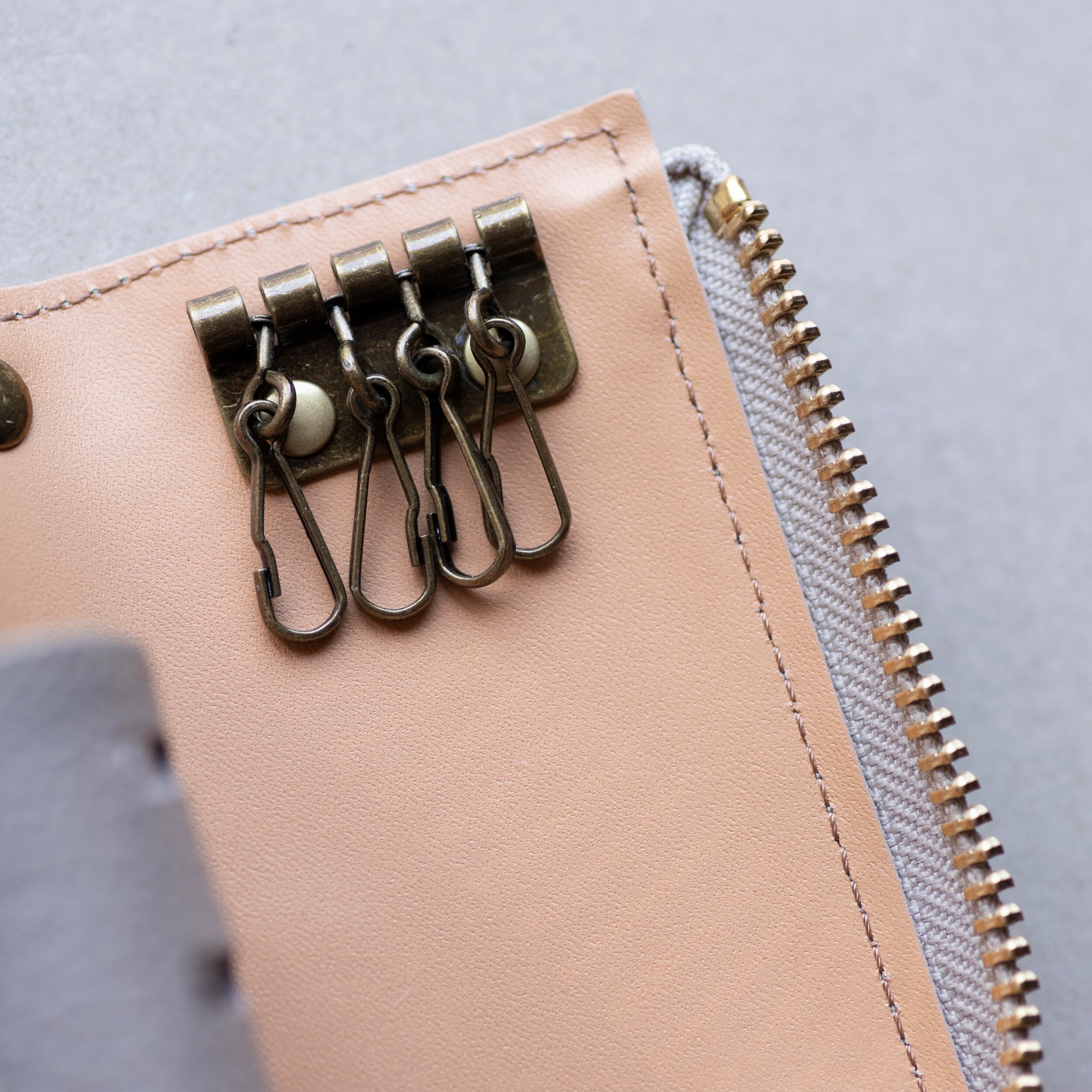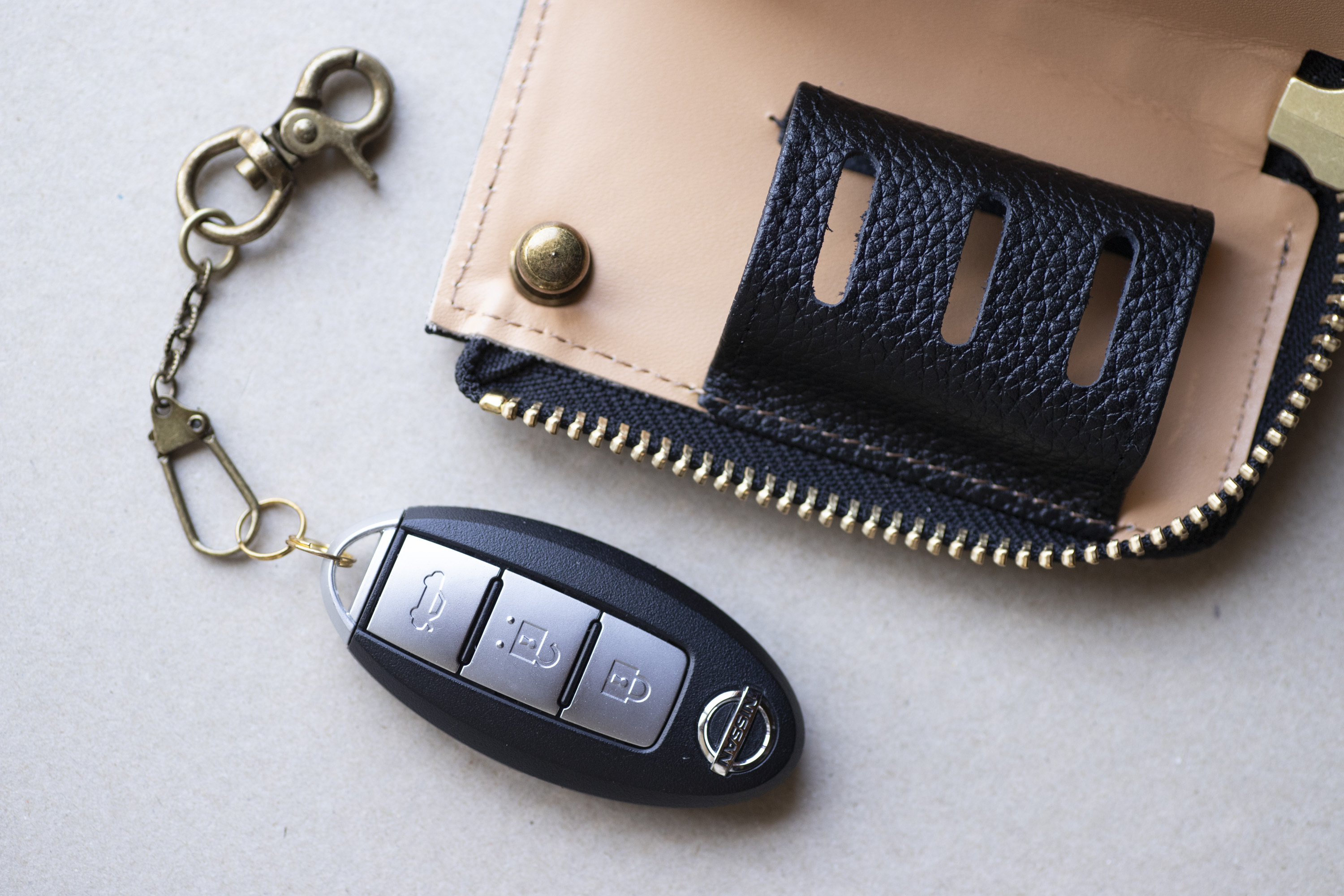 L字ファスナーを開くと、右側に鍵が4本と左側にスマートキーを入れてお使い頂けます。
