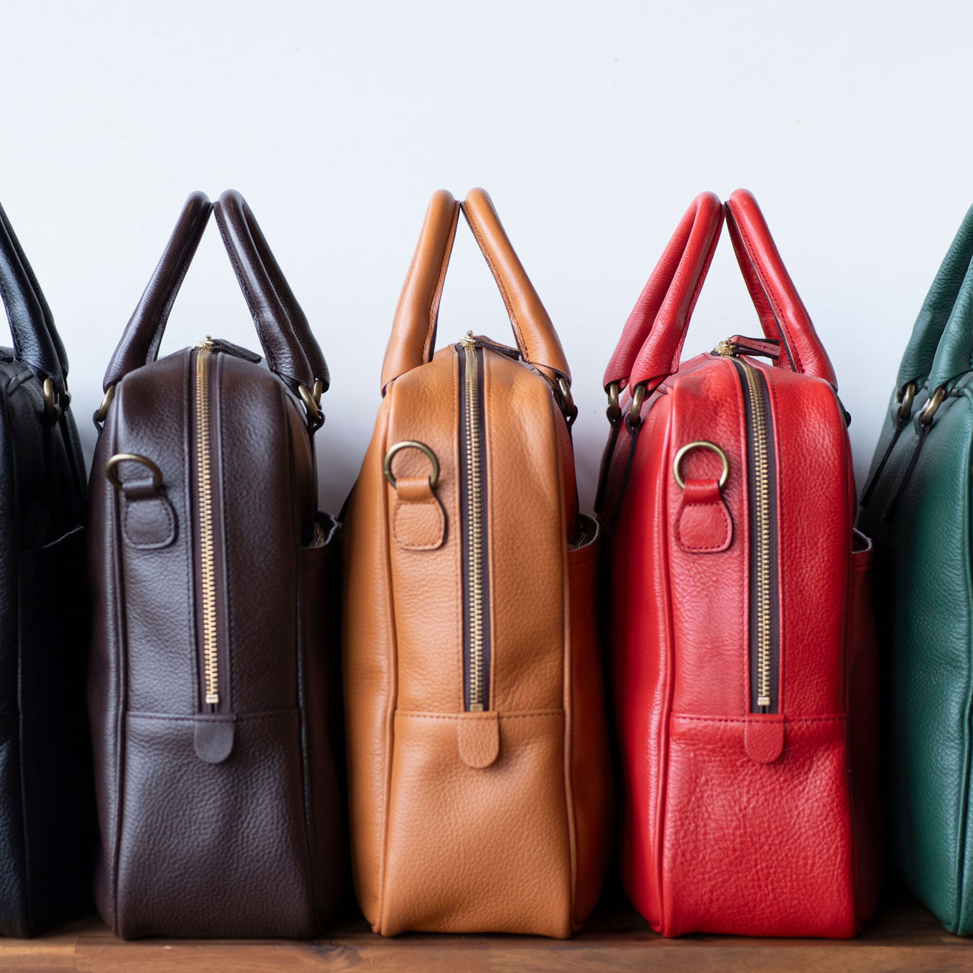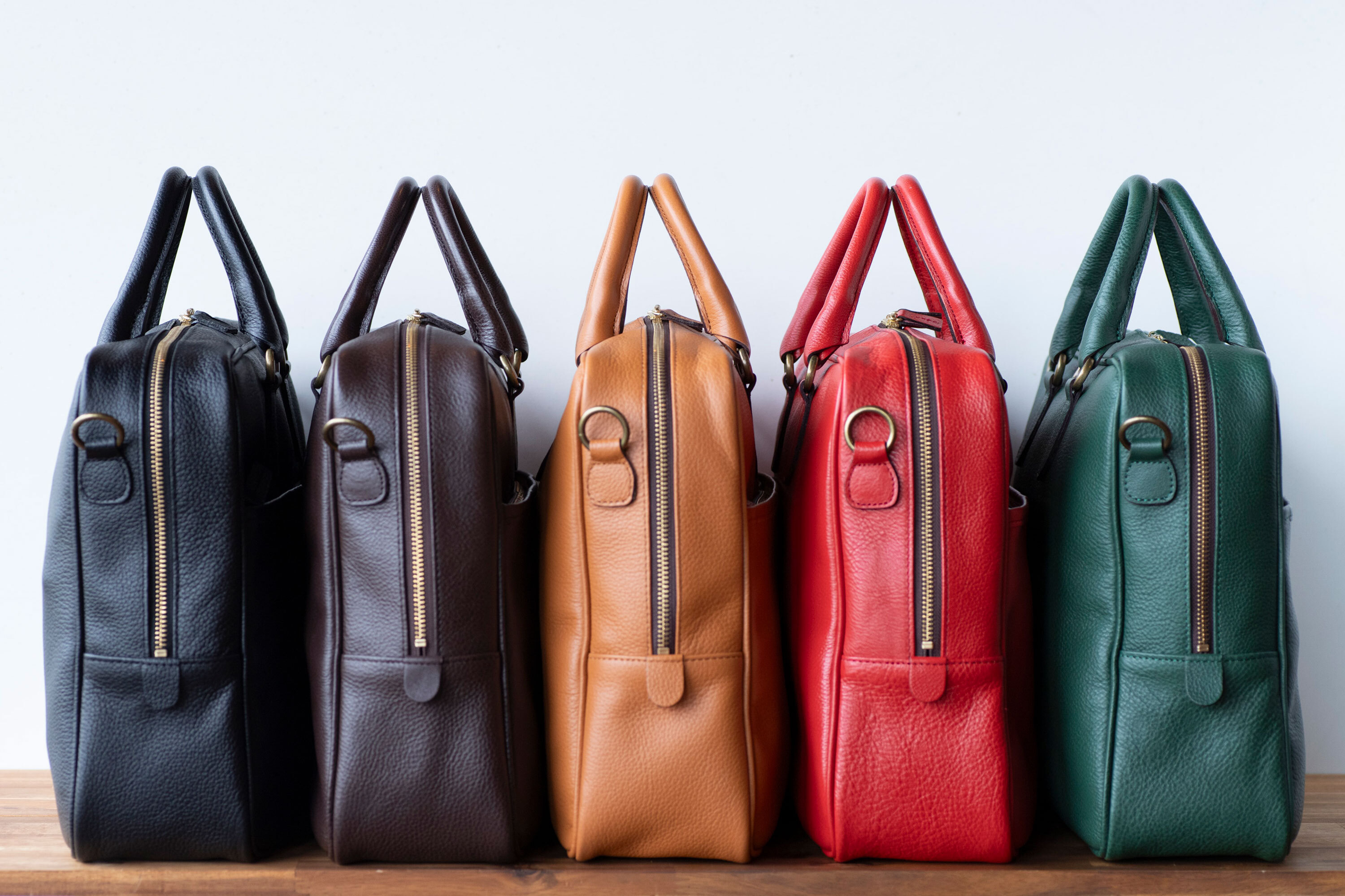 またブリーフには珍しいグリーン・レッドを採用することにより、色目を合わせにくいビジネススタイルに目を引くアイテムとなります。