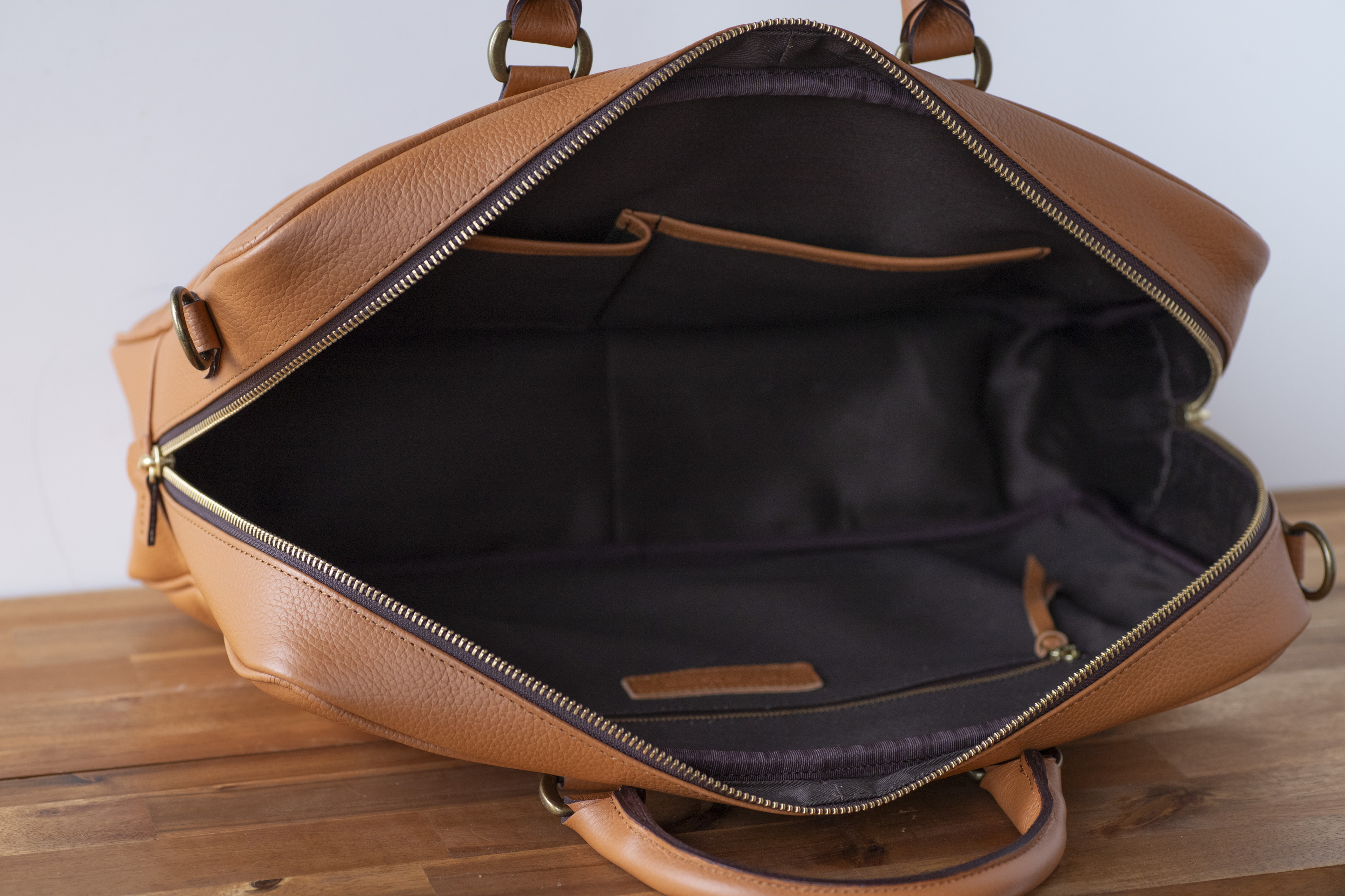 マチ幅はPCや書類などもしっかりと入れることが出来ながらスタイリッシュにスッキリと見えるサイズにしました。