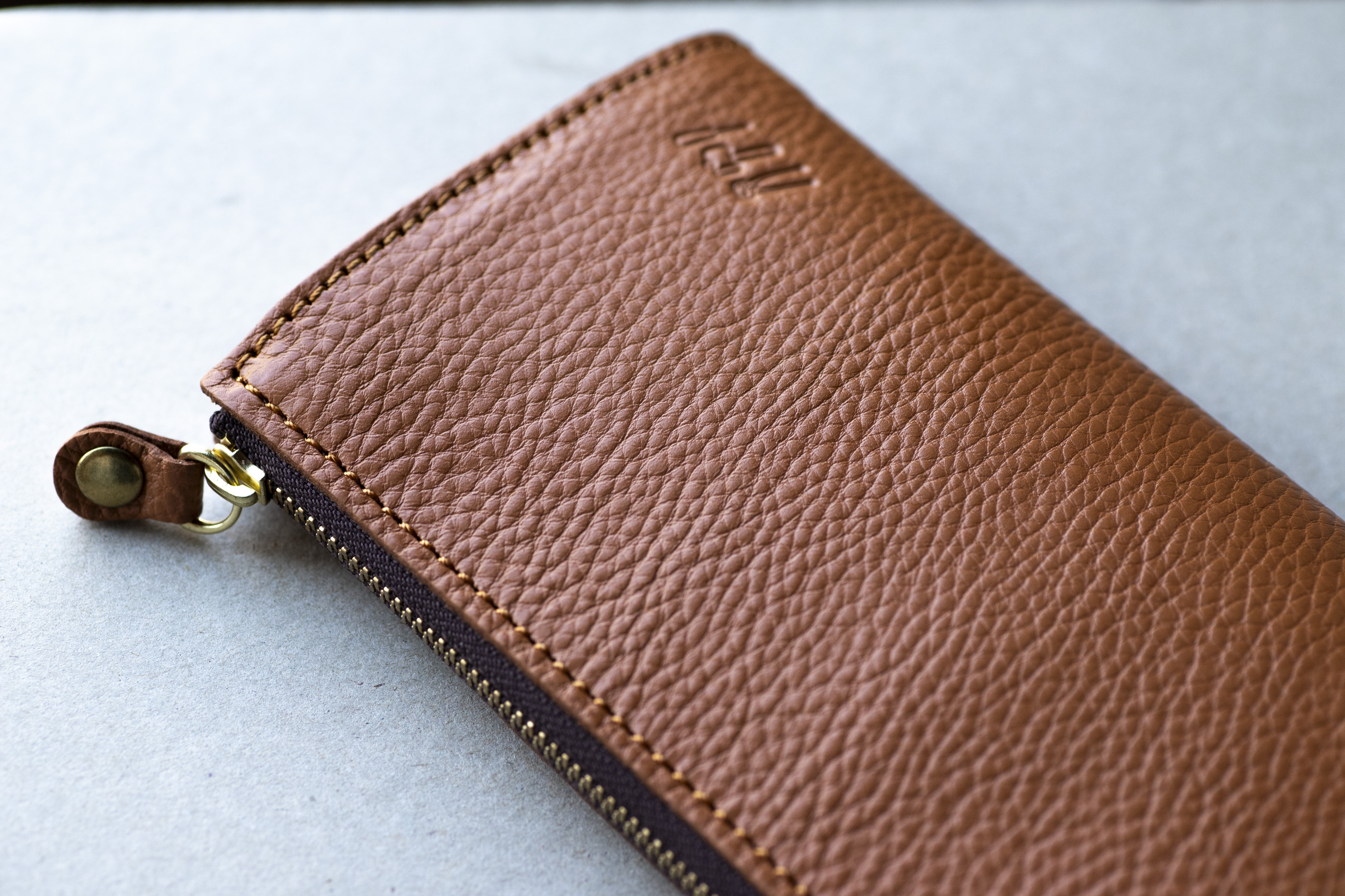 天然シュリンクの味わい深いL字ファスナー長財布です。