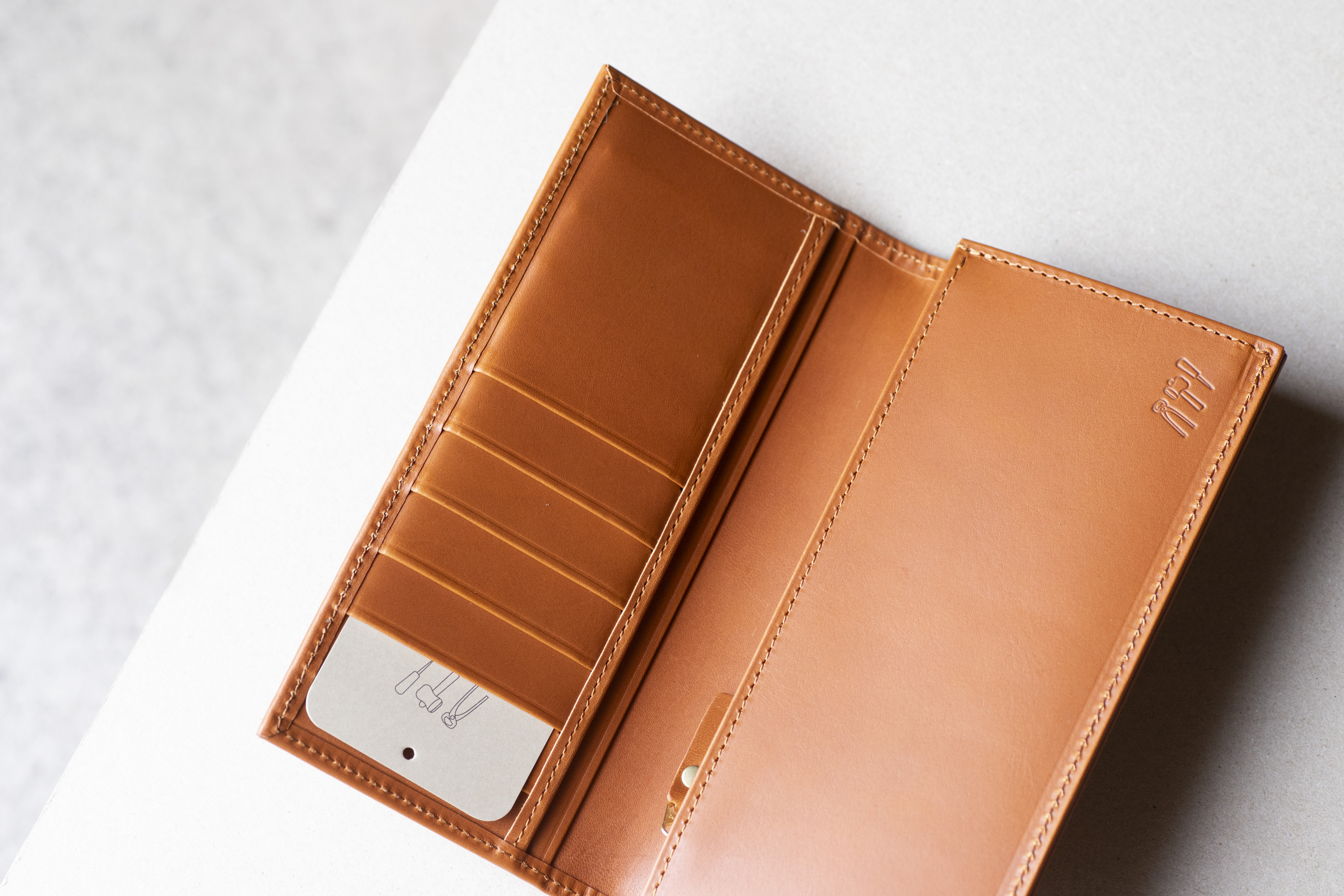 姫路産アラバスタレザーを使った、ジャケットスタイルなどの合う落ち着きのあるウォレットとなっています。