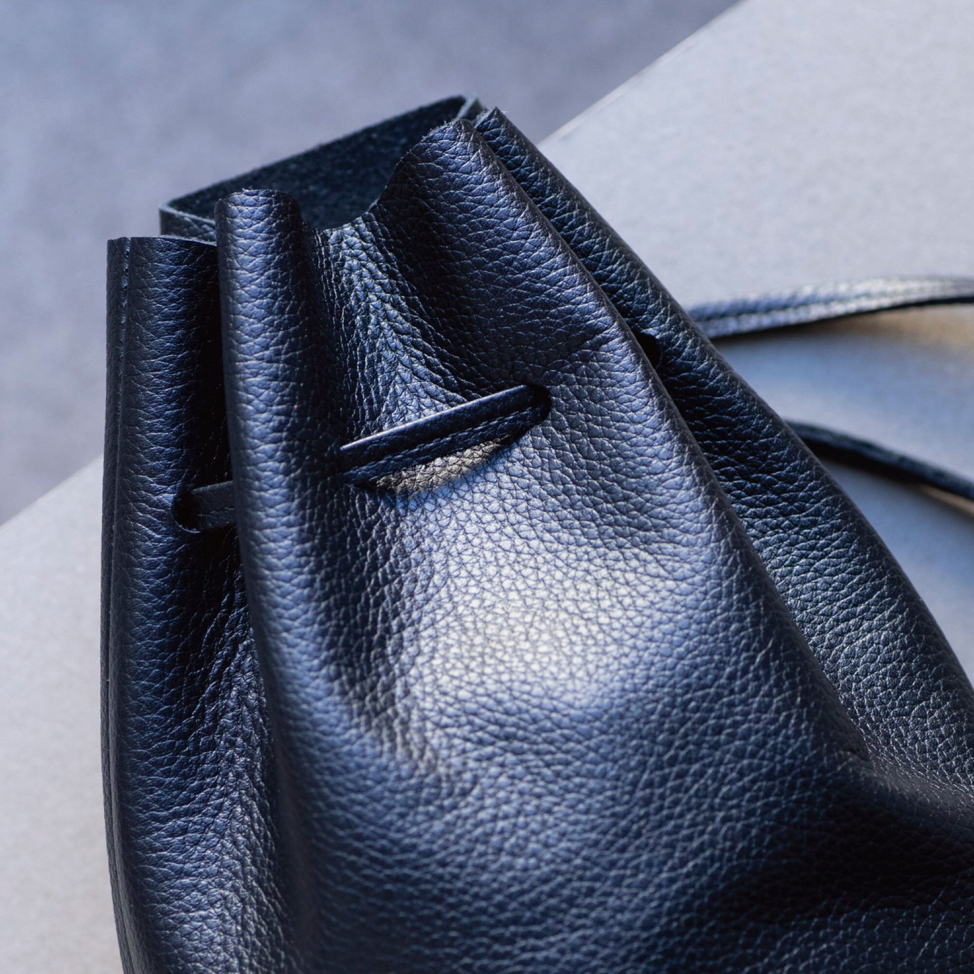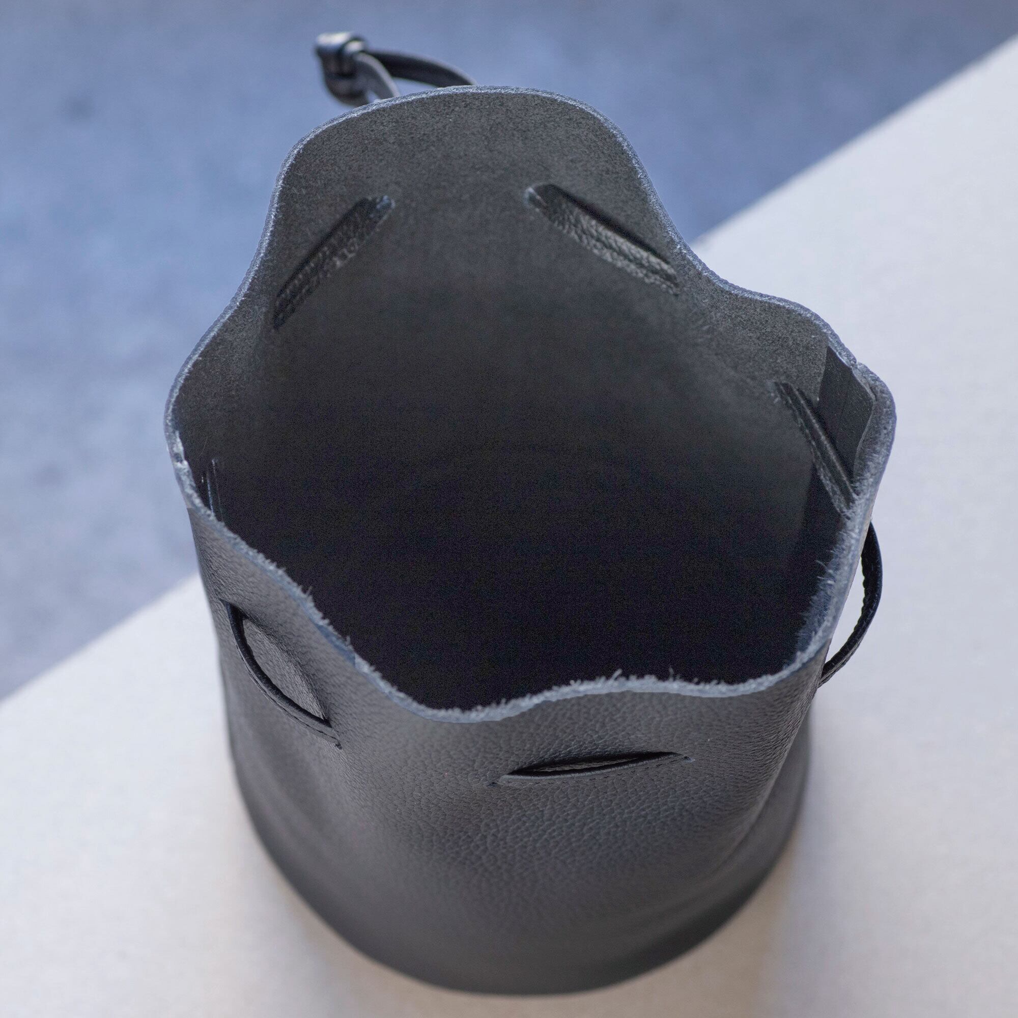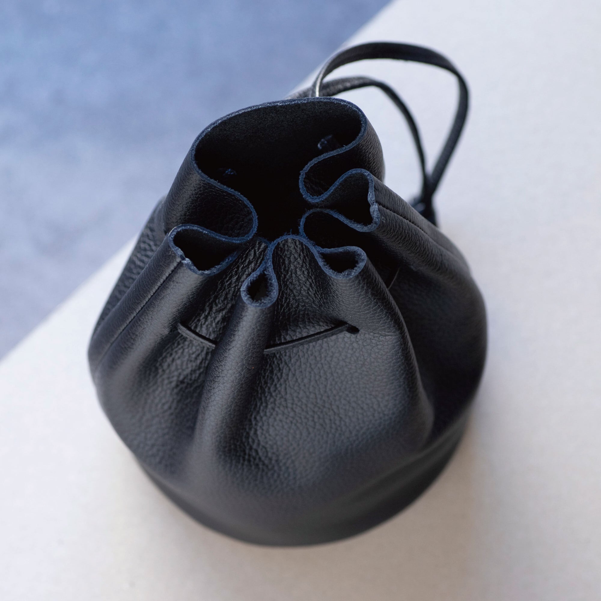 コンパクトなサイズながら、収納もしっかりと出来るレザー巾着です。