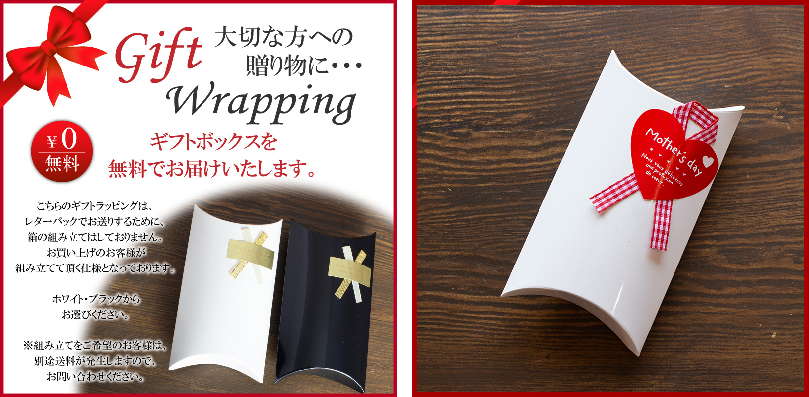 なお、こちらのギフトラッピングは当店での箱の組み立てはしておりません。