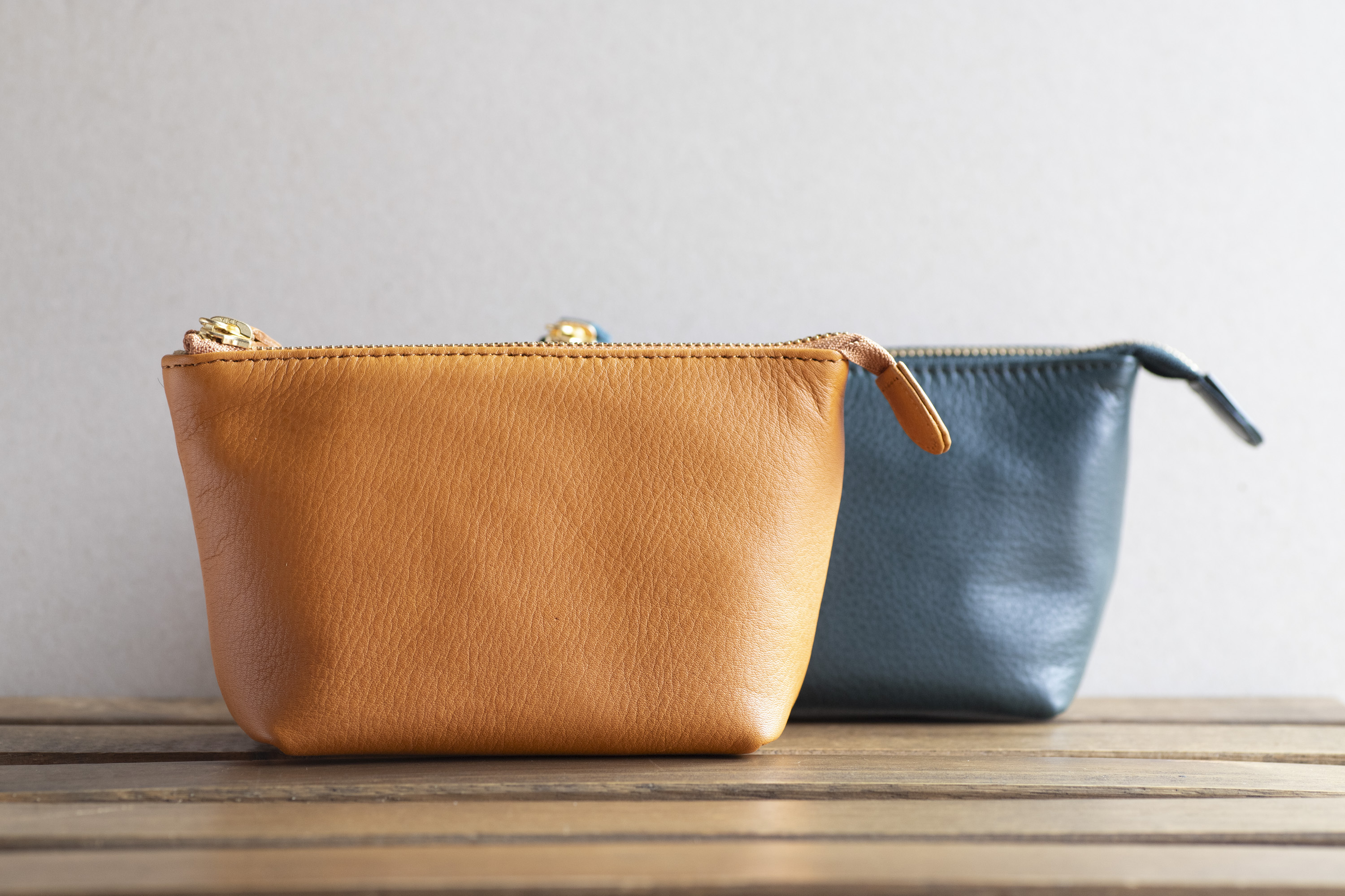牛革ソフトシュリンクレザーで使ったとても手触りのいいポーチです。