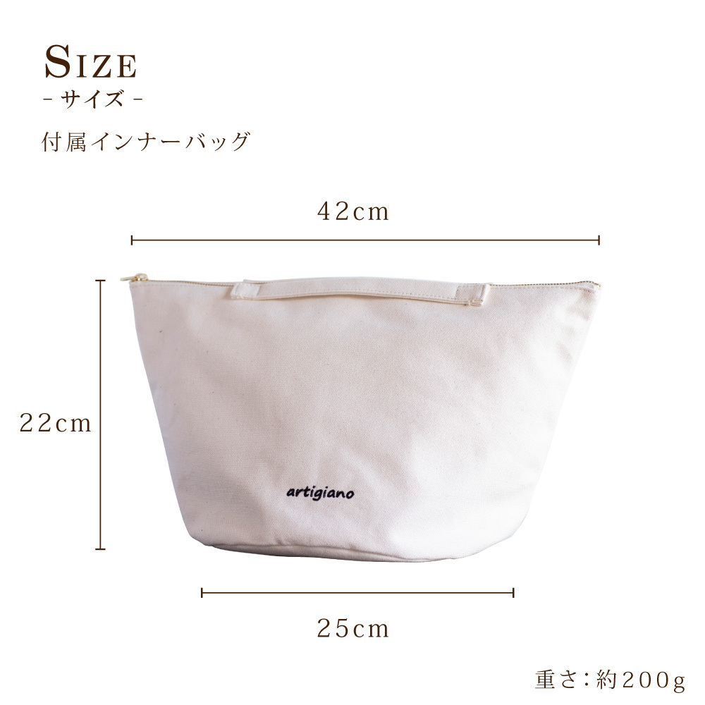 インナーバッグ : 横(口元)42cm × 横(底)25cm × 高さ22cm × マチ25cm