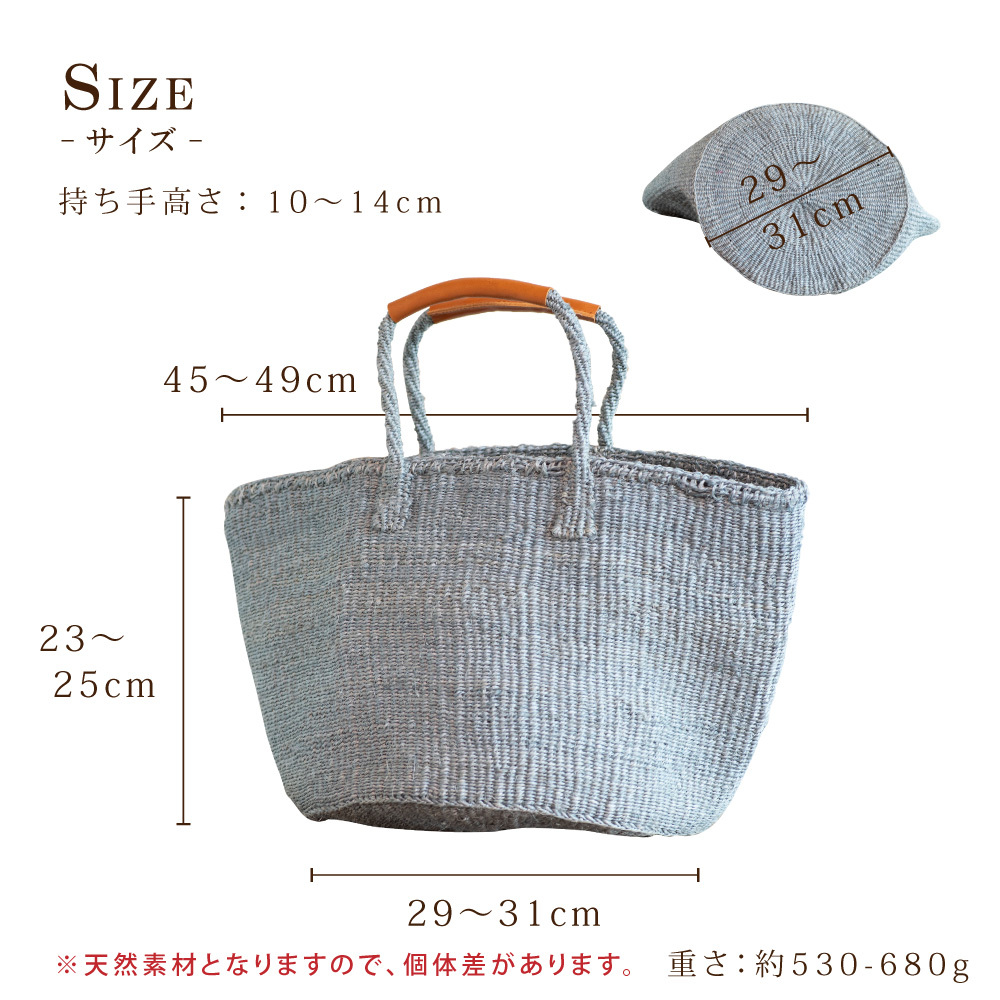 ケニアの職人がひとつひとつ手作りで編み込んだ、通気性に優れたかごバッグ。
