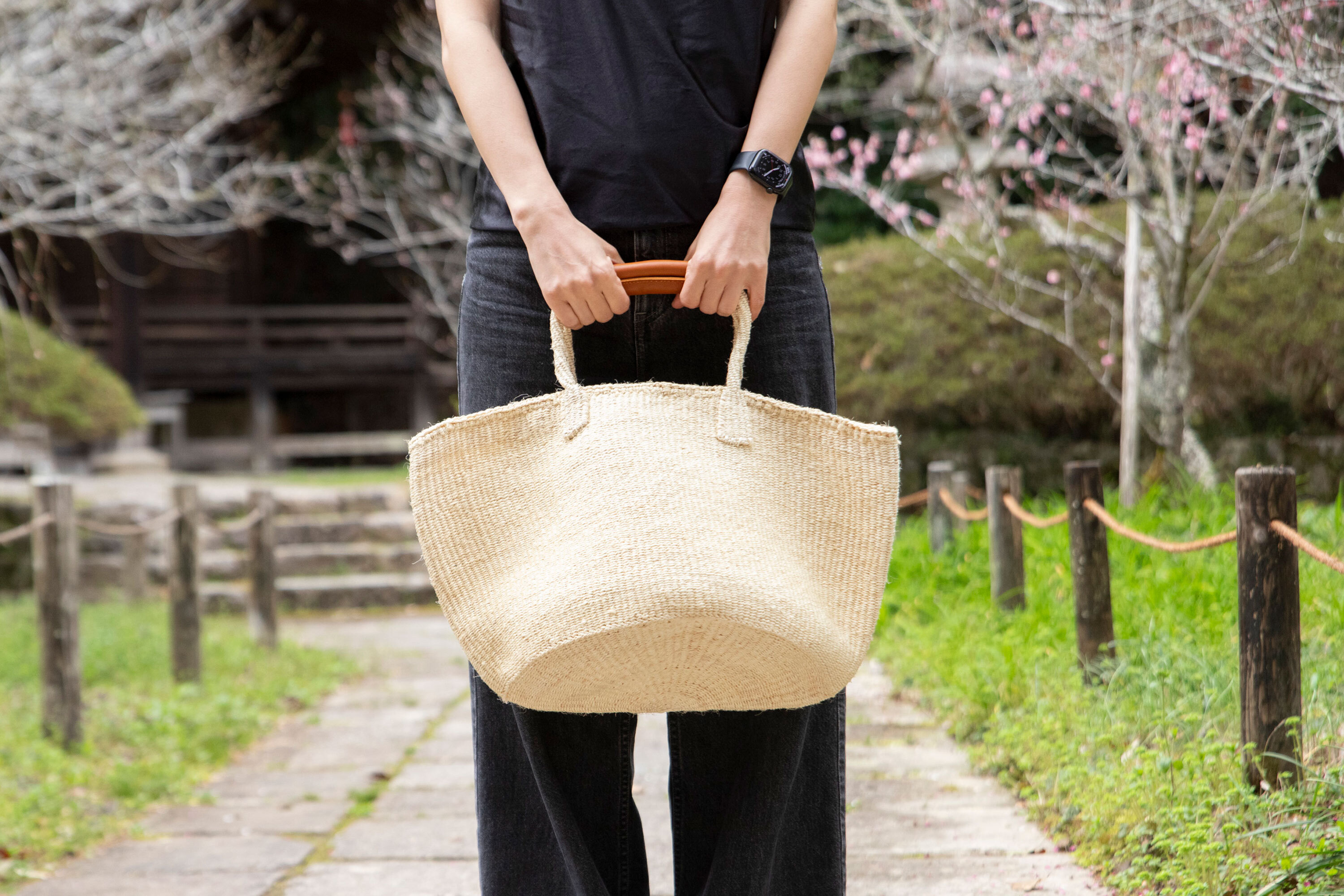 サイザルバッグは丈夫な繊維を使って織り上げられるので、新品の状態では少し表面がチクチクすることがあります。